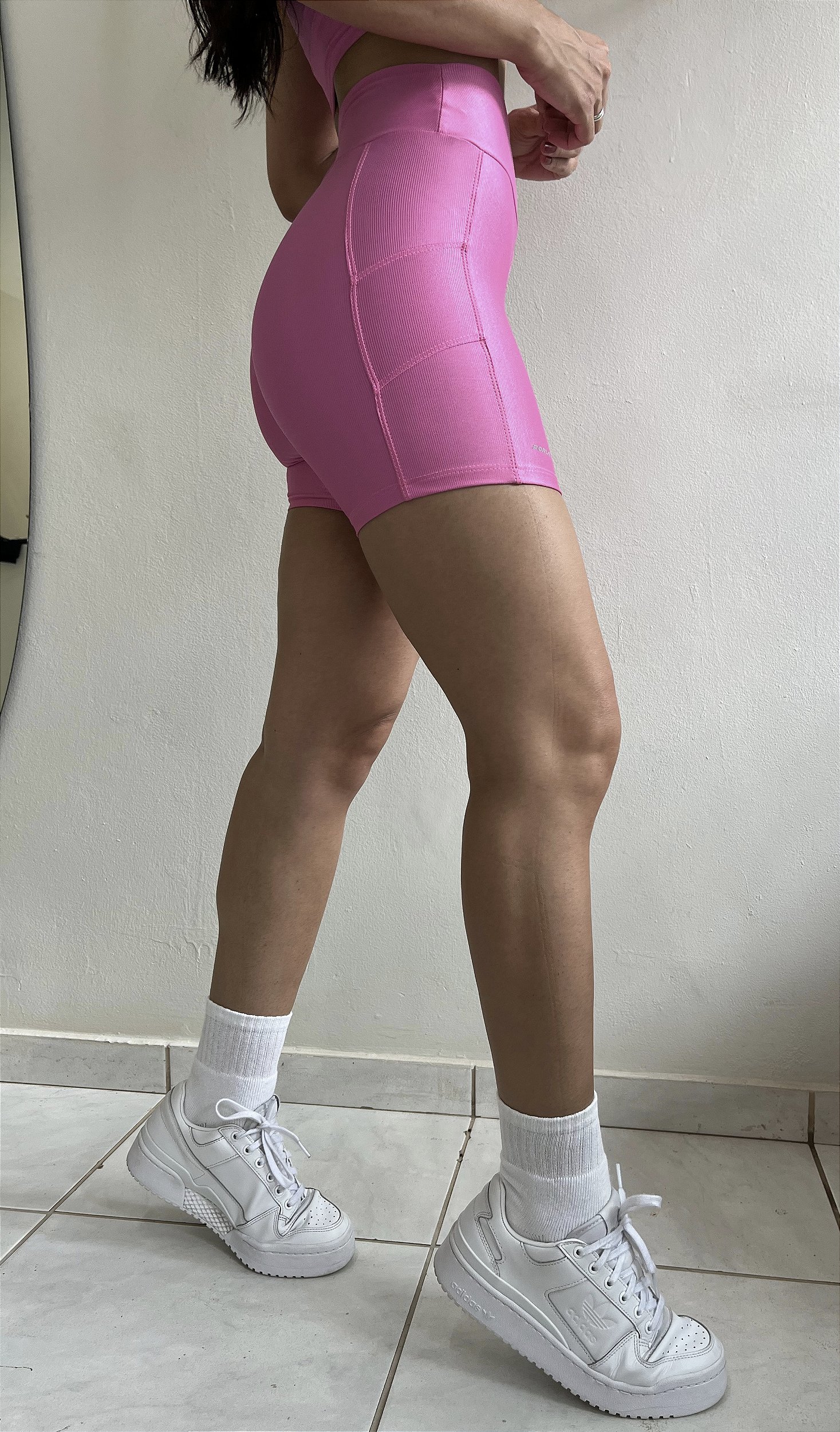 01 Short Duda rosa chiclete suplex microcanelado com recorte lateral - PORLE