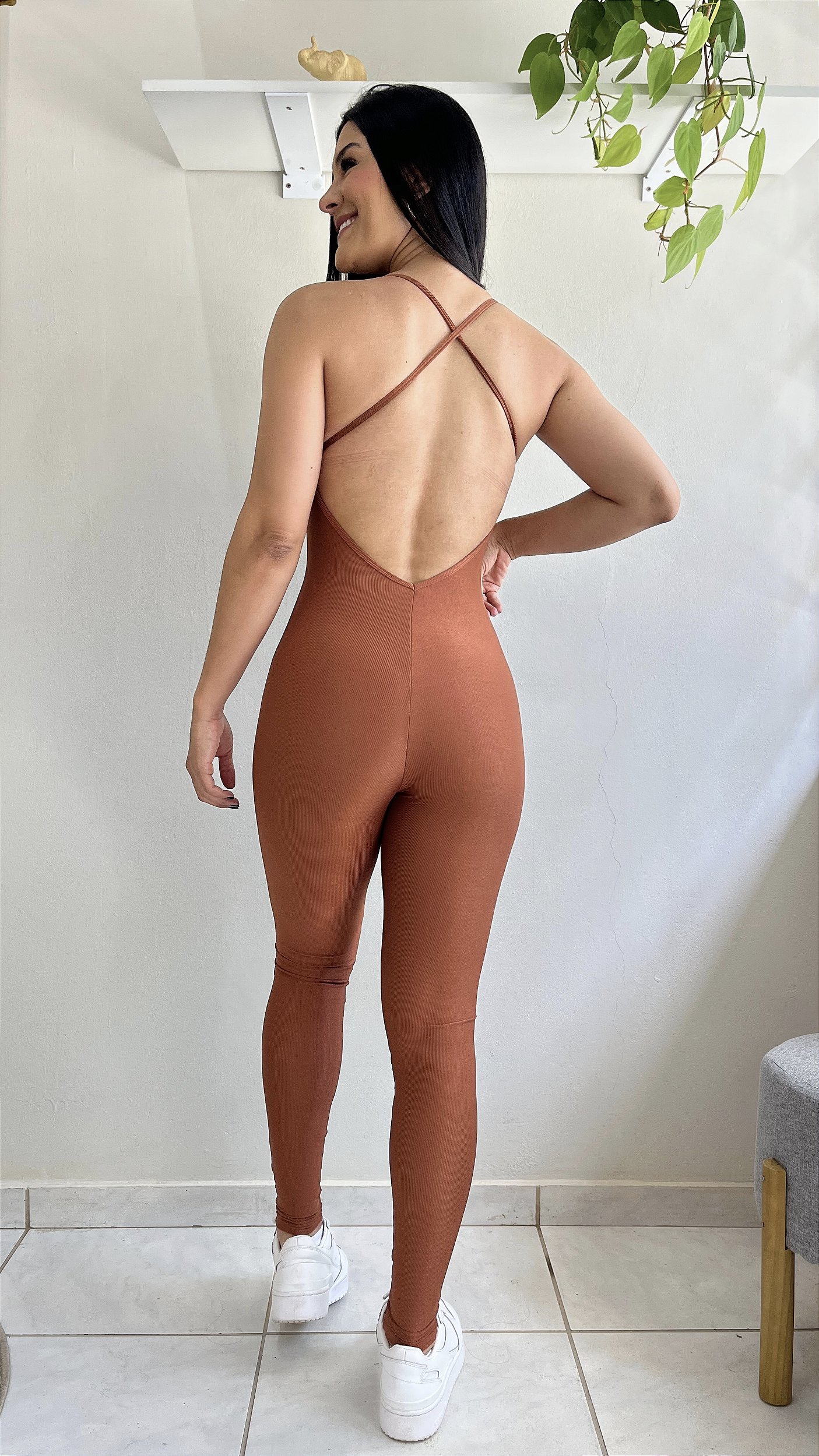Macacão terracota decote costas suplex canelado - PORLE
